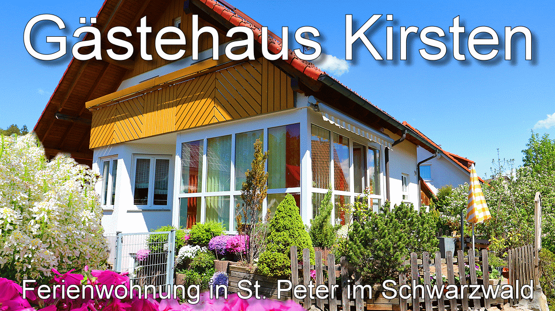 Ankommen, in der gesunden Schwarzwaldluft durchatmen und erholen... Willkommen im Gästehaus Kirsten im schönen St. Peter im Schwarzwald, das auf einer Hochfläche oberhalb Freiburgs, der sonnigsten Großstadt Deutschlands, liegt. Sie wollen einmal richtig ausspannen und den Alltagsstress vergessen?